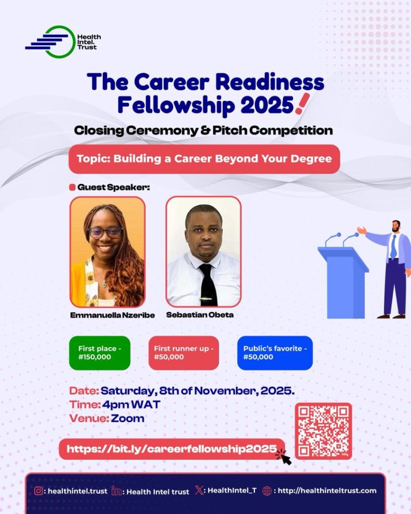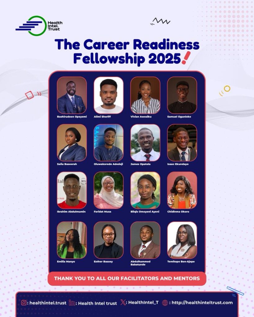 Career readiness remains a critical need for young Africans seeking to thrive at the intersection of healthcare, technology, and innovation. In response, the Health Intel Trust launched the Career Readiness Fellowship Program, an 8-week virtual initiative designed to equip youths with practical skills, mentorship, and real-world experience to enhance employability and leadership in the realm of health technology.